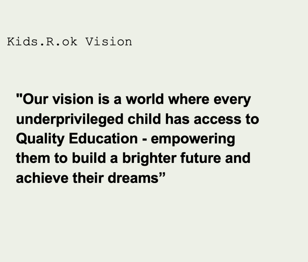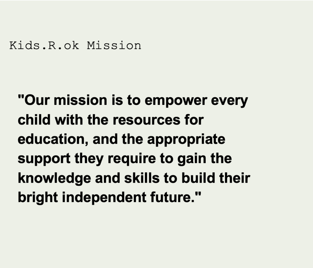 Kids.R.Ok began with an idea of creating a platform where individuals of various backgrounds could come together and make an impact to a great social need.